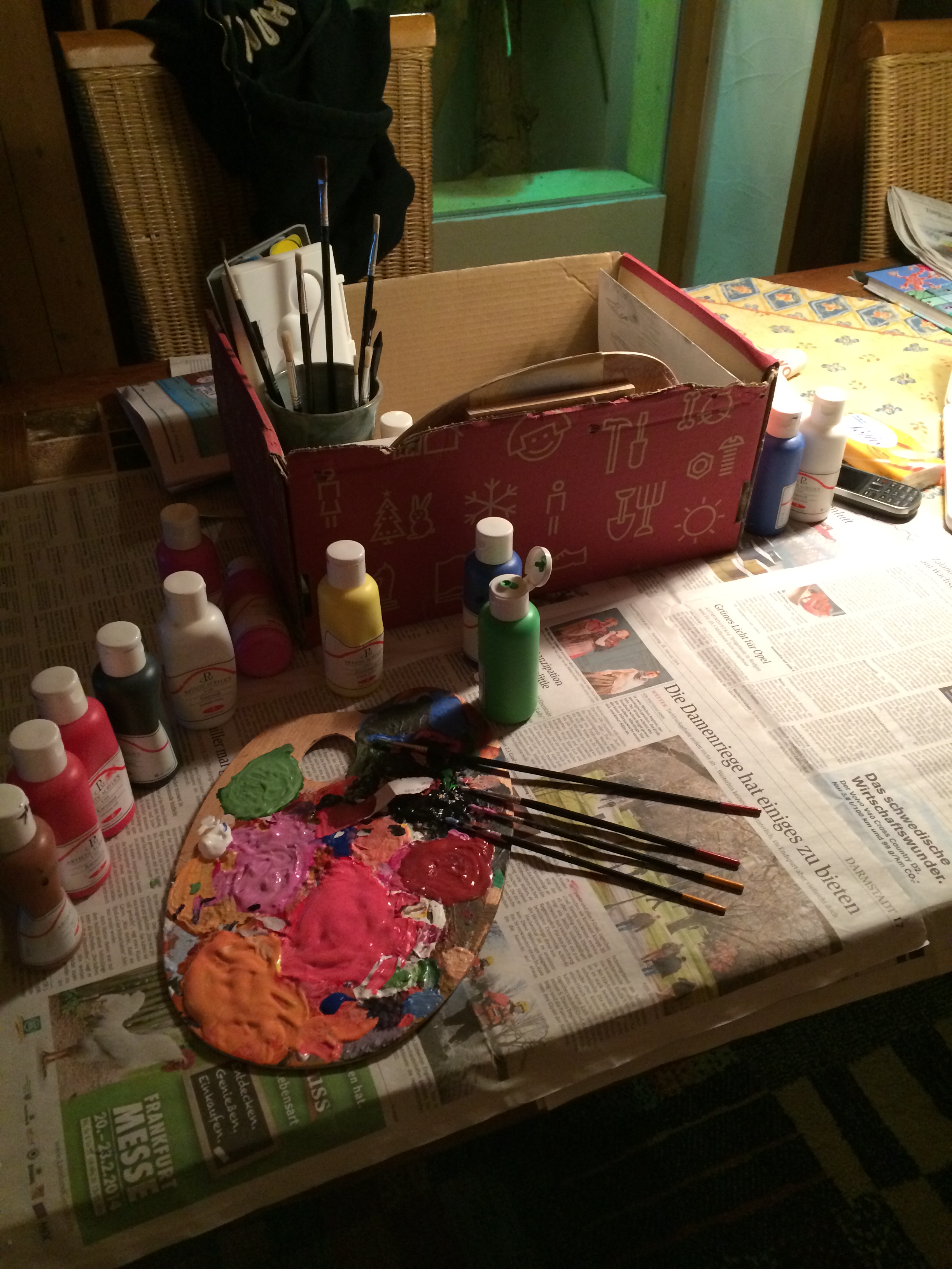 Man sollte nicht einen was aus so einem Tischregal machen kann. Motiv Karton beorgen und dann die Phantasie spielen lassen. NAtürlich nicht meine Phantasie – dieses Ergebnis möchte niemand sehen. Aber zum Glück hat ja Gaby alles das, was mir zu solchen Arbeiten fehlt, die künstlerische Krativität und dann auch noch die Möglichkeit, das Ganze umzusetzen.