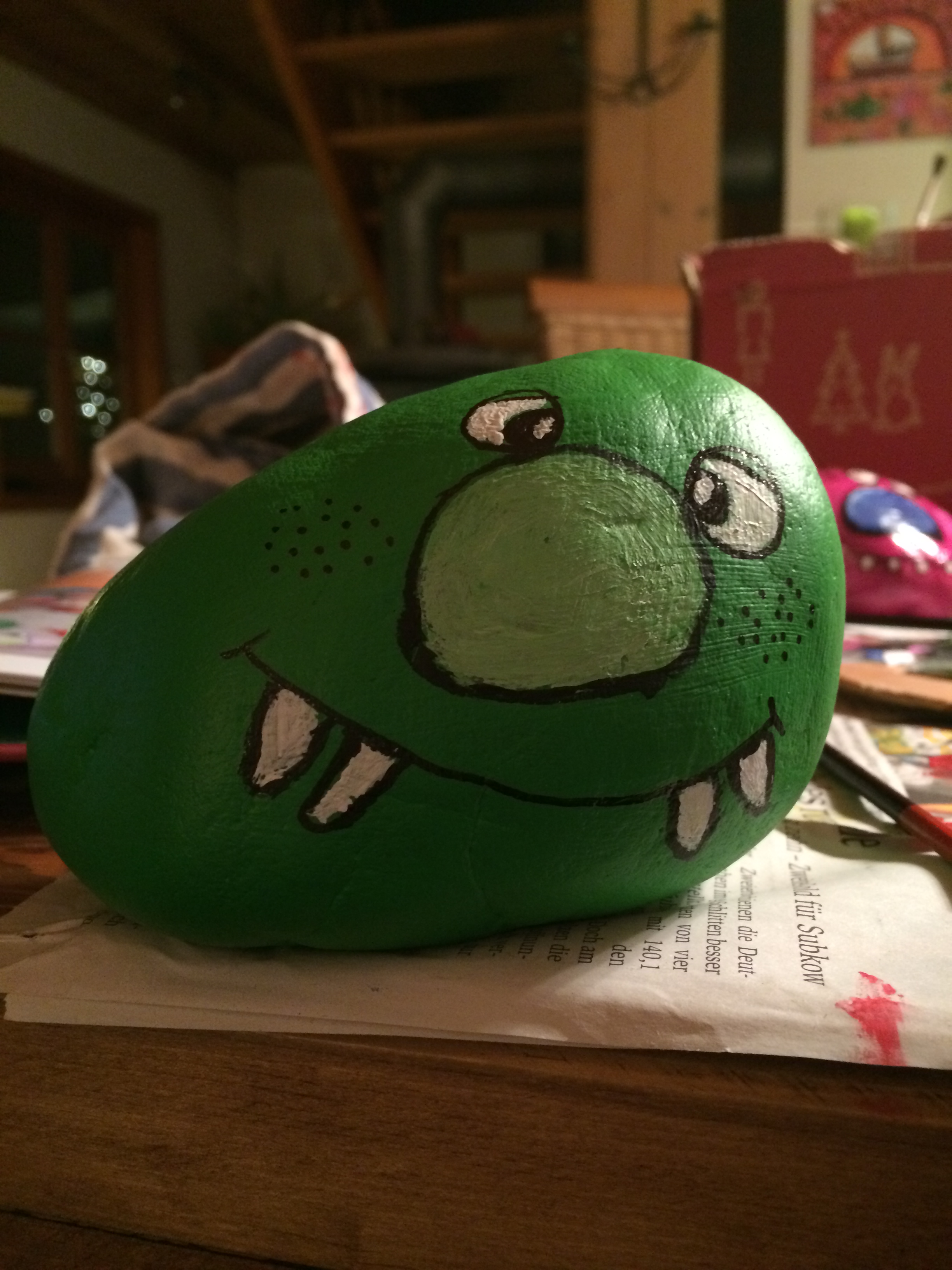 Wir hatten erst eine normale Glühbirne dahinter, allerdings sieht es mit einer Lichterkette wesentlich besser aus. Wir werden nächste Woche mal eine LED Lichterkette einbauen und dann einen entsprechenden Platz für den Kleinen suchen.