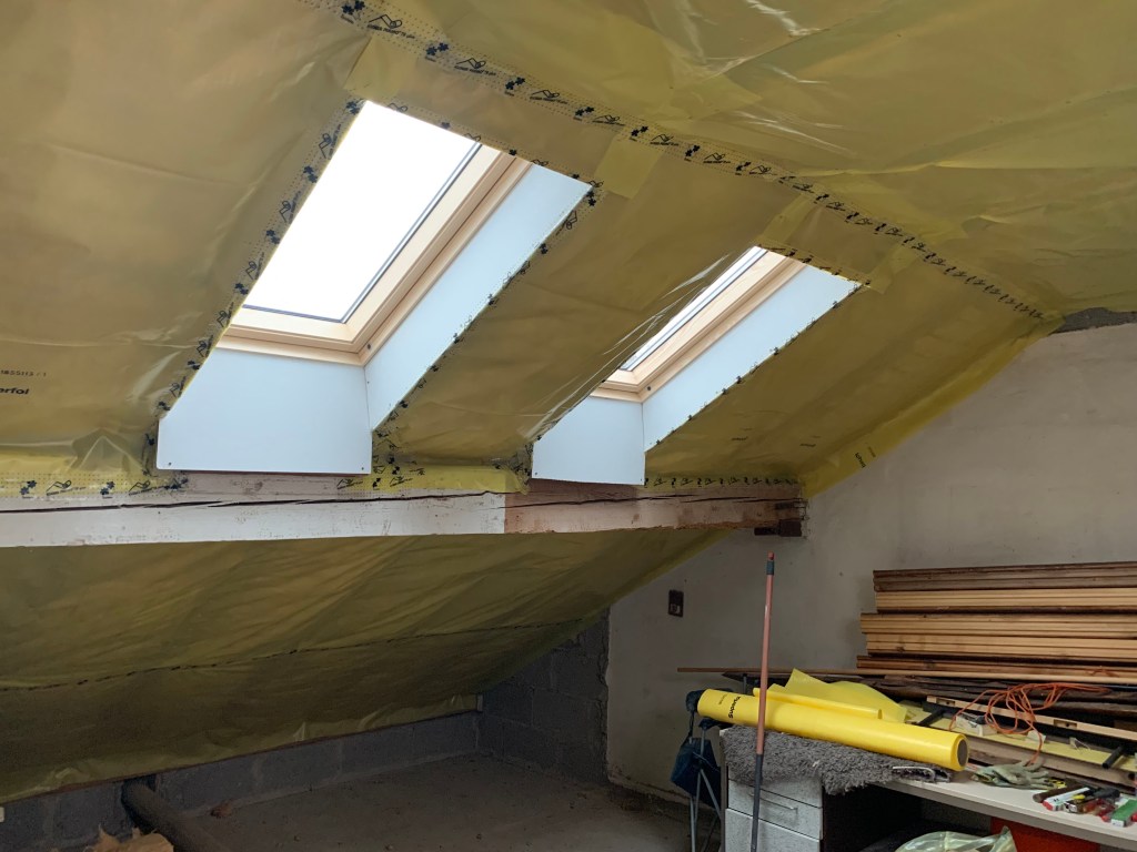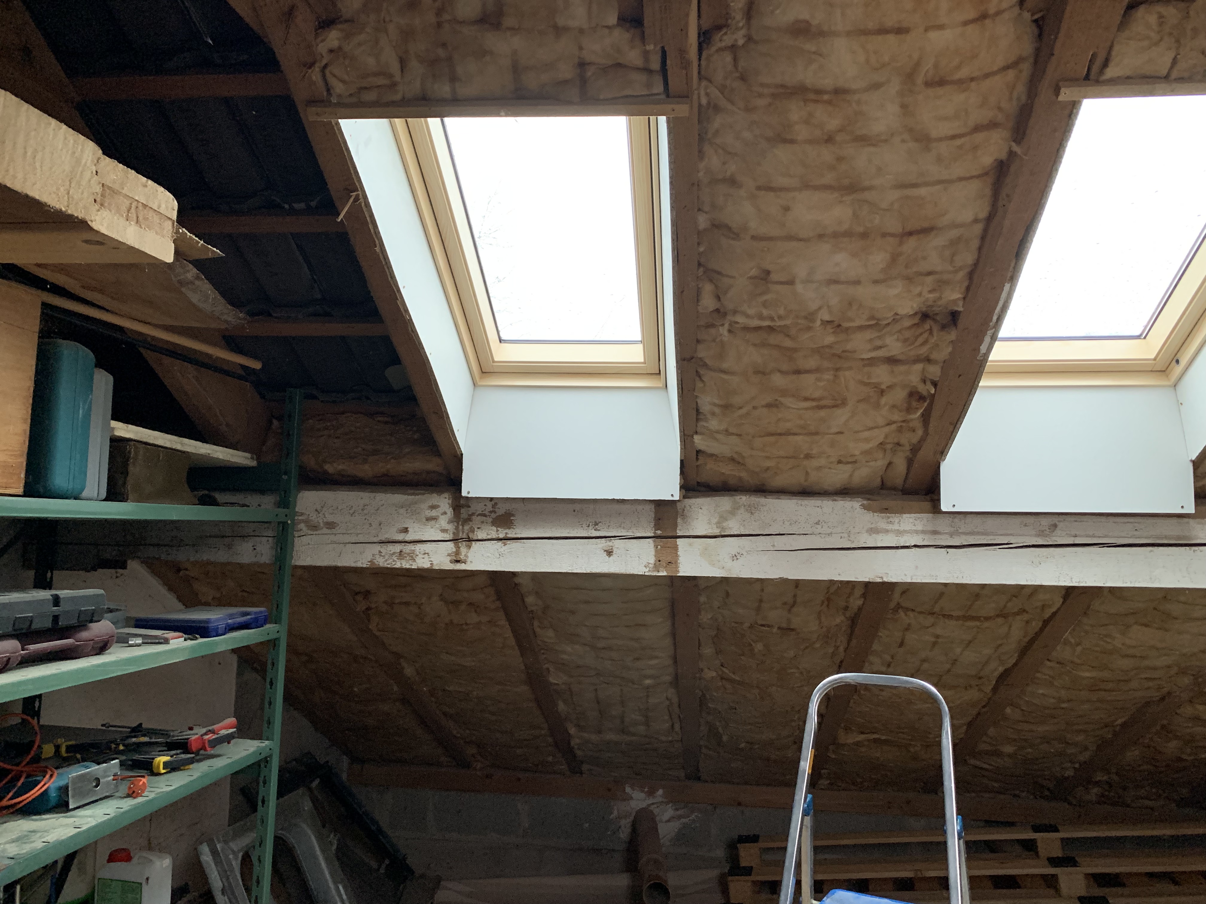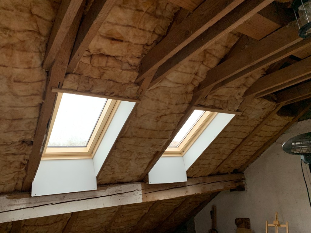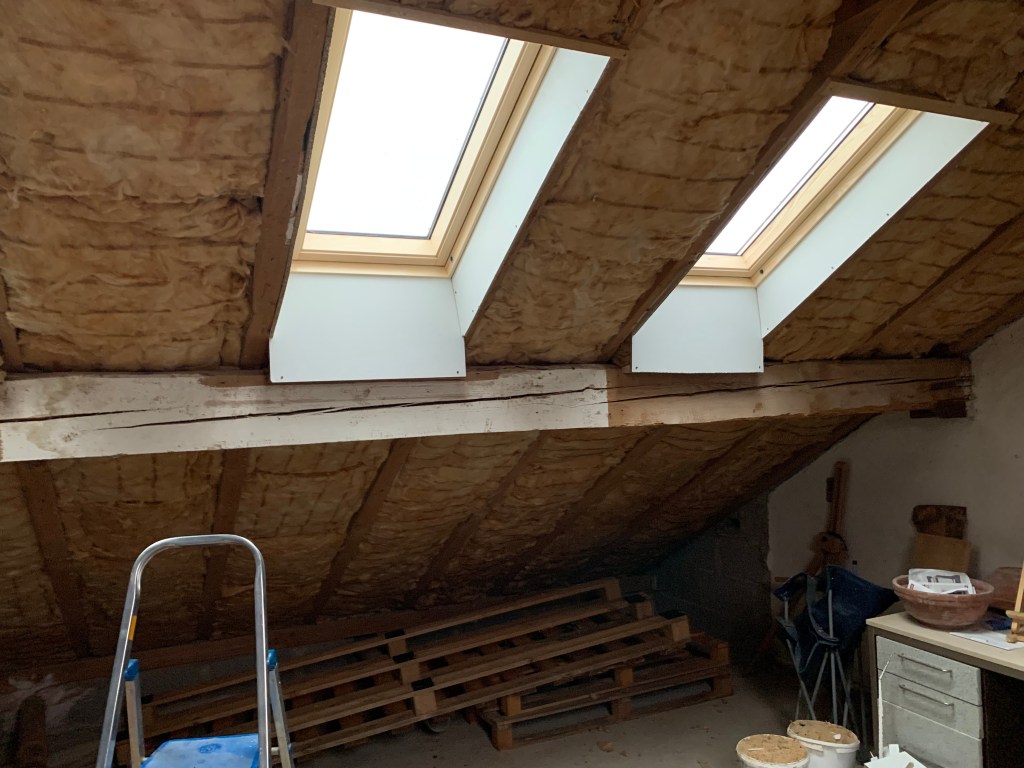 Mit vereinten Kräften sind wir ein ganzes Stück weiter gekommen. So langsam nimmt das ganze Formen an. Ich wollte bis Weihnachten fertig sein und tatsächlich sind wir fast durch. Die restlichen alten Dachluken-Fenster sind bis auf eins ausgebaut, das befindet sich über der Treppe und bleibt erhalten.