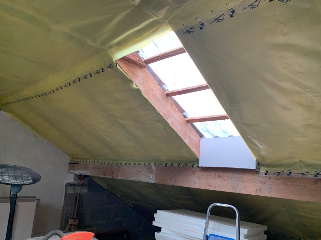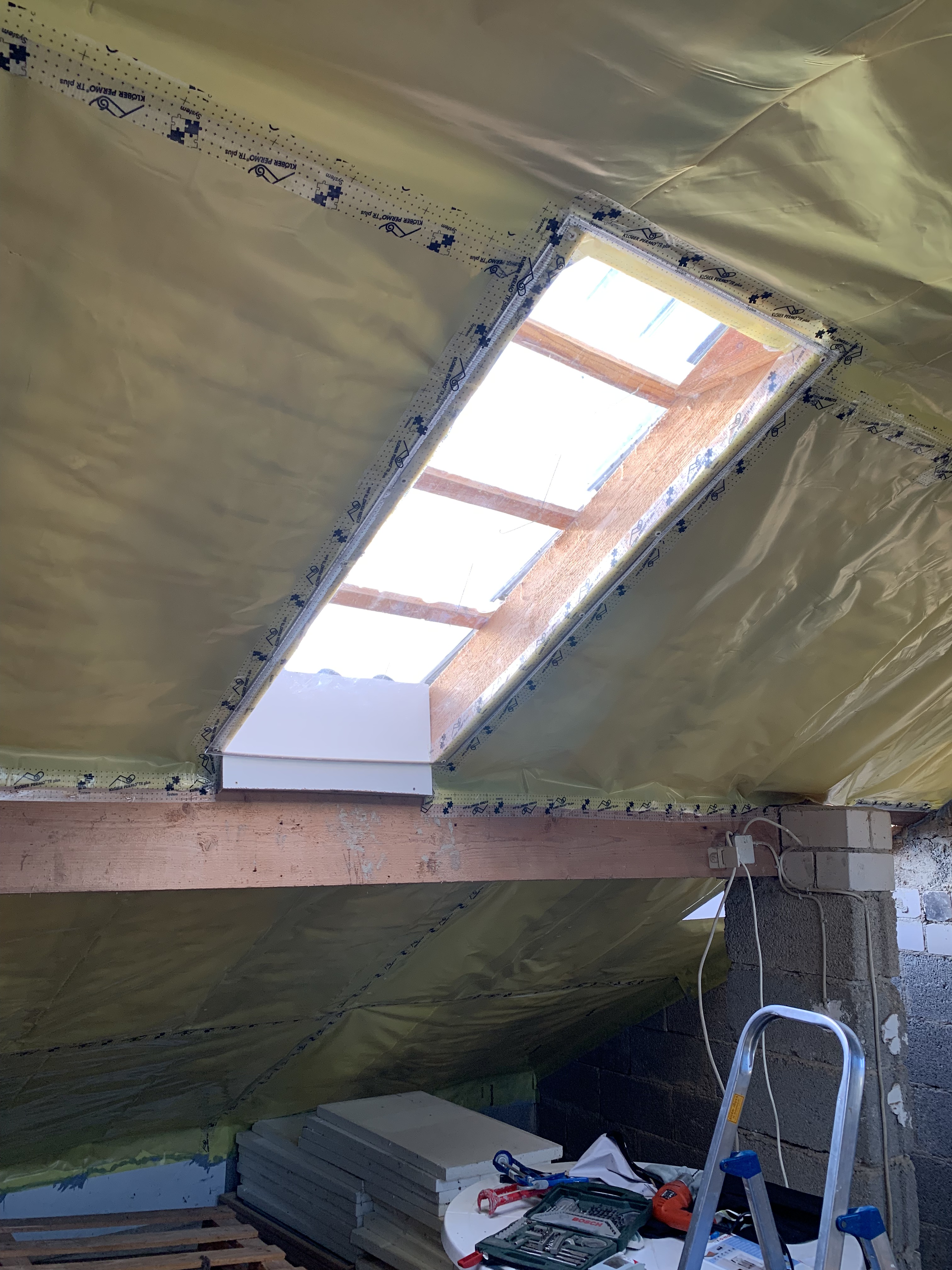 Heute im Atelier die Glasziegel und das letzte Dachfenster mit Plexiglasscheiben verkleidet. Der Dachausbau ist damit fertiggestellt.