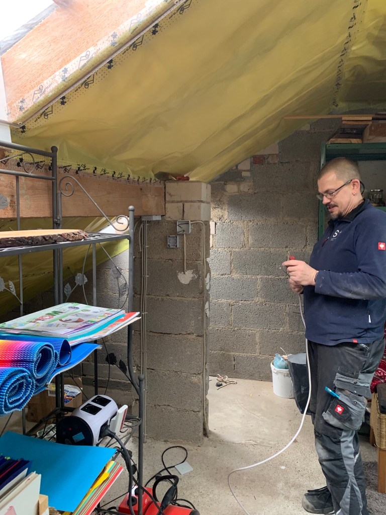 Wir sind ein großes Stück weiter gekommen: das Atelier wurde neu mit Strom versorgt. Die alten Leitungen wurden entfernt und der Raum wurde neu „verkabelt“. Dank Sven haben wir neue Leitungen, neue Anschlüsse und endlich auch ausreichend Licht zum Arbeiten.