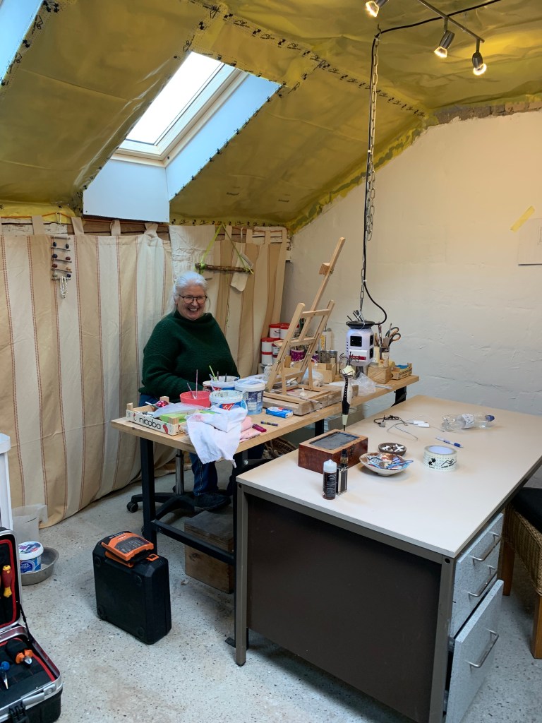 So langsam wird es im Atelier gemütlich, der angeschaffte Heizlüfter sorgt auch für angenehme Temperaturen und die Arbeitsflächen können jetzt alle benutzt werden. Mal sehen wie sich das weiter entwickelt….