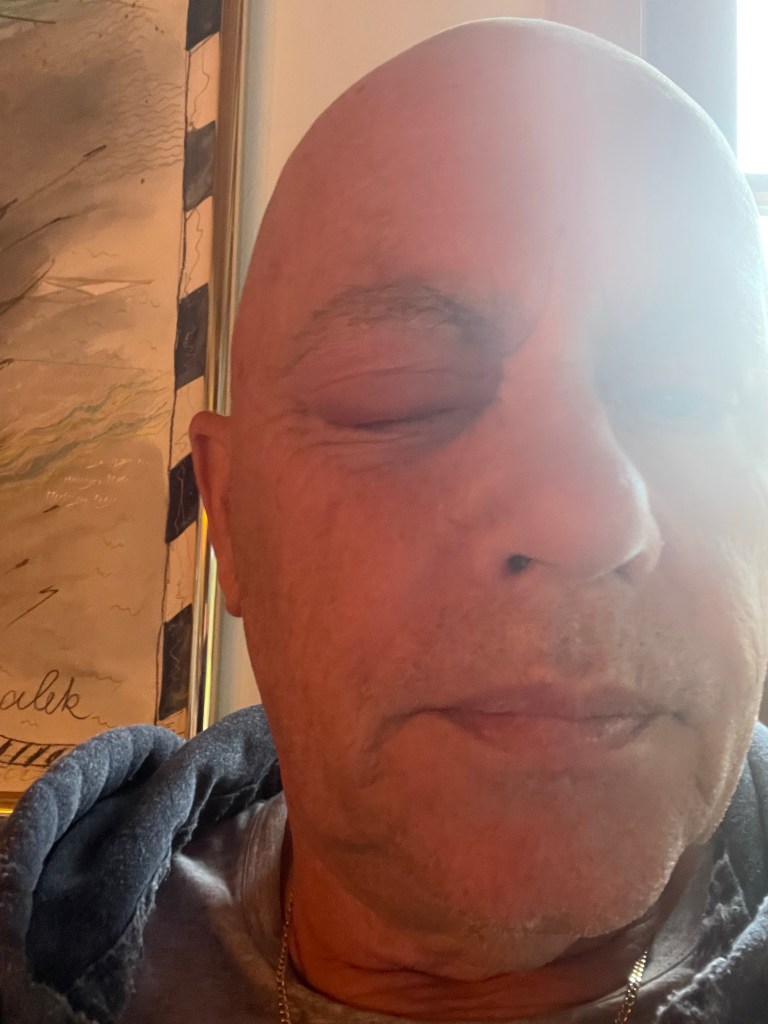 Dienstag ging es dann nicht ganz so gut. Wenn man den Kopf nach unten neigt und es pocht unter dem Auge: Nebenhöhlen entzündet. Erst mal alles eingeworfen und geschluckt was die Hausapotheke so hergibt. Wirklich besser wurde es nicht. 1. Besuch beim Doc. Antibiotika; relativ erfolglos. Außerdem machte mein Gesicht eine gewisse Veränderung durch. Das rechte Auge wollte sich nicht mehr öffnen.