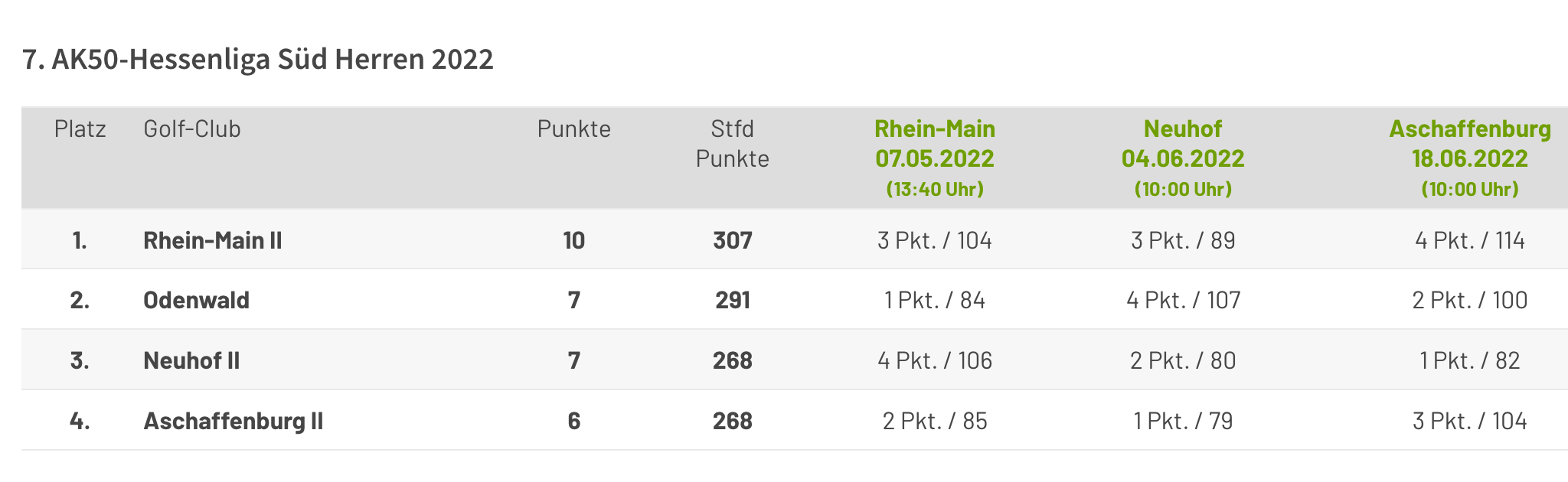 5 Punkte haben uns zum 2. Platz gefehlt, wenn der Ball und hätte ich dort und dann ……; es sollte nicht sein. Alle haben gekämpft und ihr Bestes gegeben. Danke an Rainer, Jörg, Georg, Karsten, Günther und Fred, die bei diesen Temperaturen gespielt haben. Nun wird es bei unserem Heimspiel noch mal ein wenig enger als erwartet, 3 Punkte Vorsprung für Rhein-Main, 1 Punkt Vorsprung auf den Abstiegsplatz.