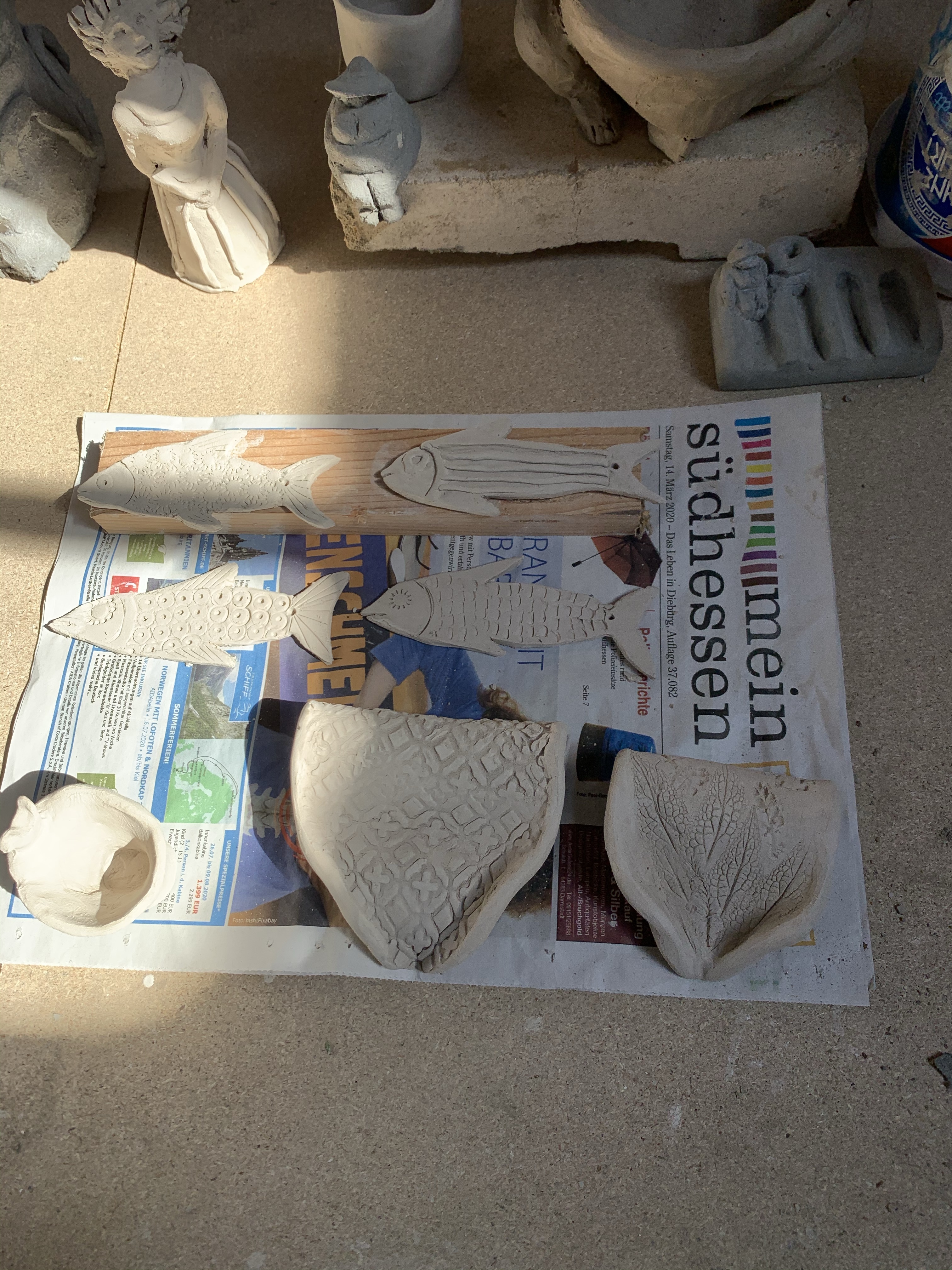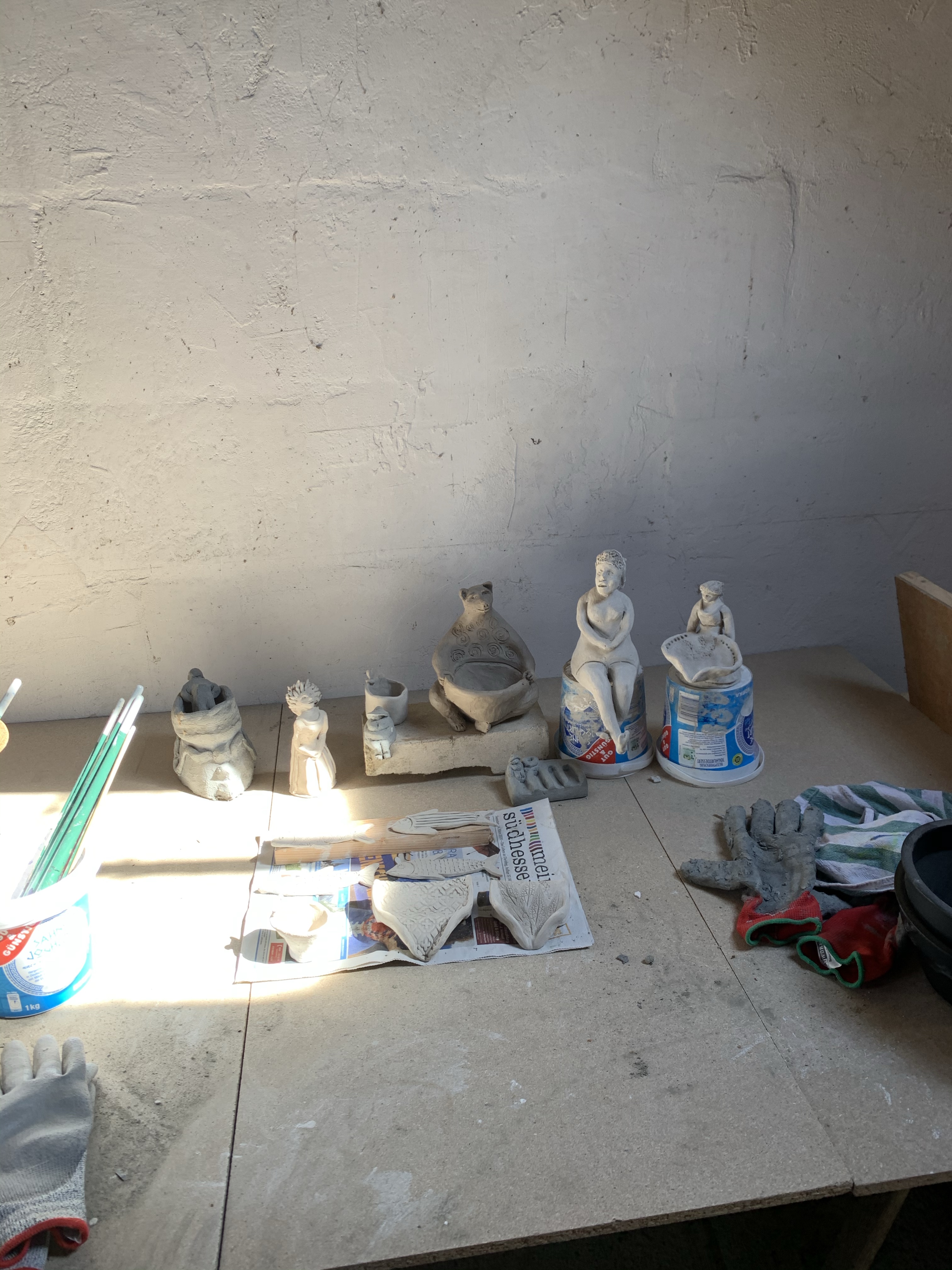 Der Brennofen wurde wieder gangbar gemacht und ein neuer Arbeitstisch aufgebaut. Ton ist heute eingetroffen und wir werden mal sehen, was Gaby damit alles anstellen kann.